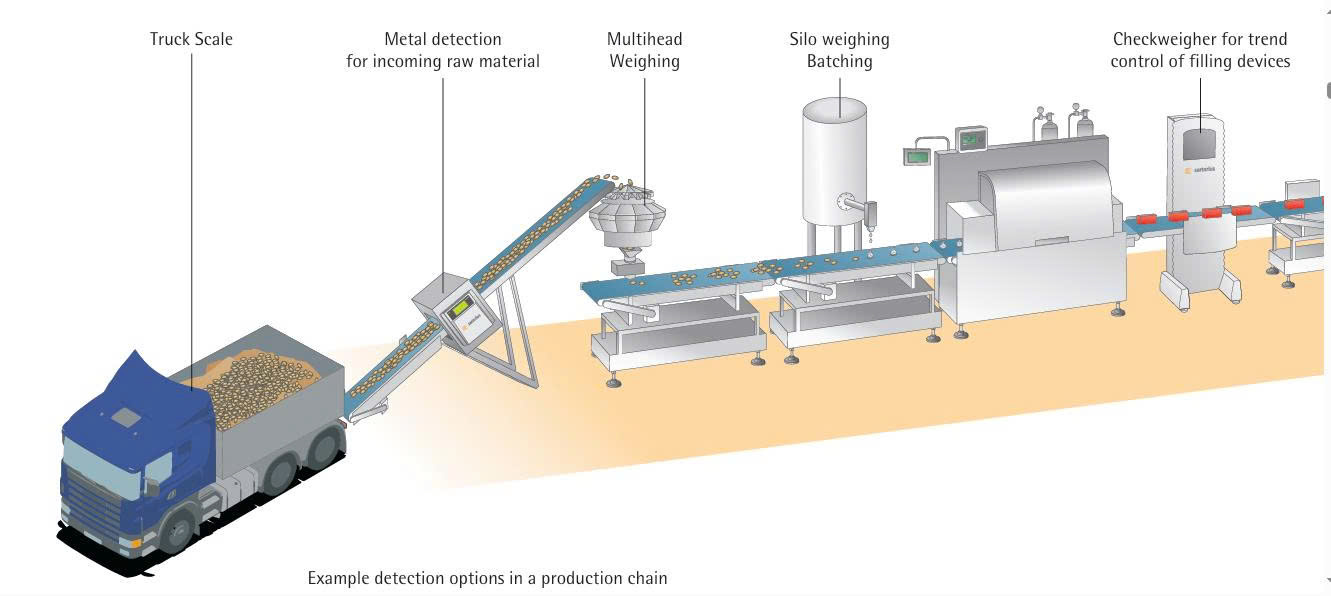 Cân kiểm tra được đặt ở cuối hoặc giữa dây chuyền sản xuất để tự động cân từng sản phẩm khi di chuyển qua băng tải. Thiết bị sẽ: