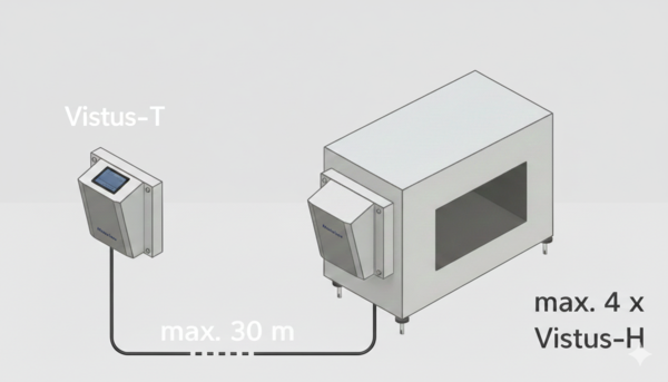Khác với các phiên bản tích hợp, Vistus-H cho phép tách rời đầu dò và bộ điều khiển, giúp doanh nghiệp dễ dàng bố trí thiết bị theo không gian nhà máy và yêu cầu kỹ thuật thực tế.